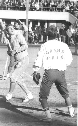 21.8.66 PK-P kohtasi Kämärillä Oulun Lipon. Kuvassa Lipon lukkari Tero Rancken on syöttänyt pallon korkeuksiin, Puurtilan Eero Nieminen valmiina lyöntiin. Ottelu päättyi kotijoukkueelle 14-8. |